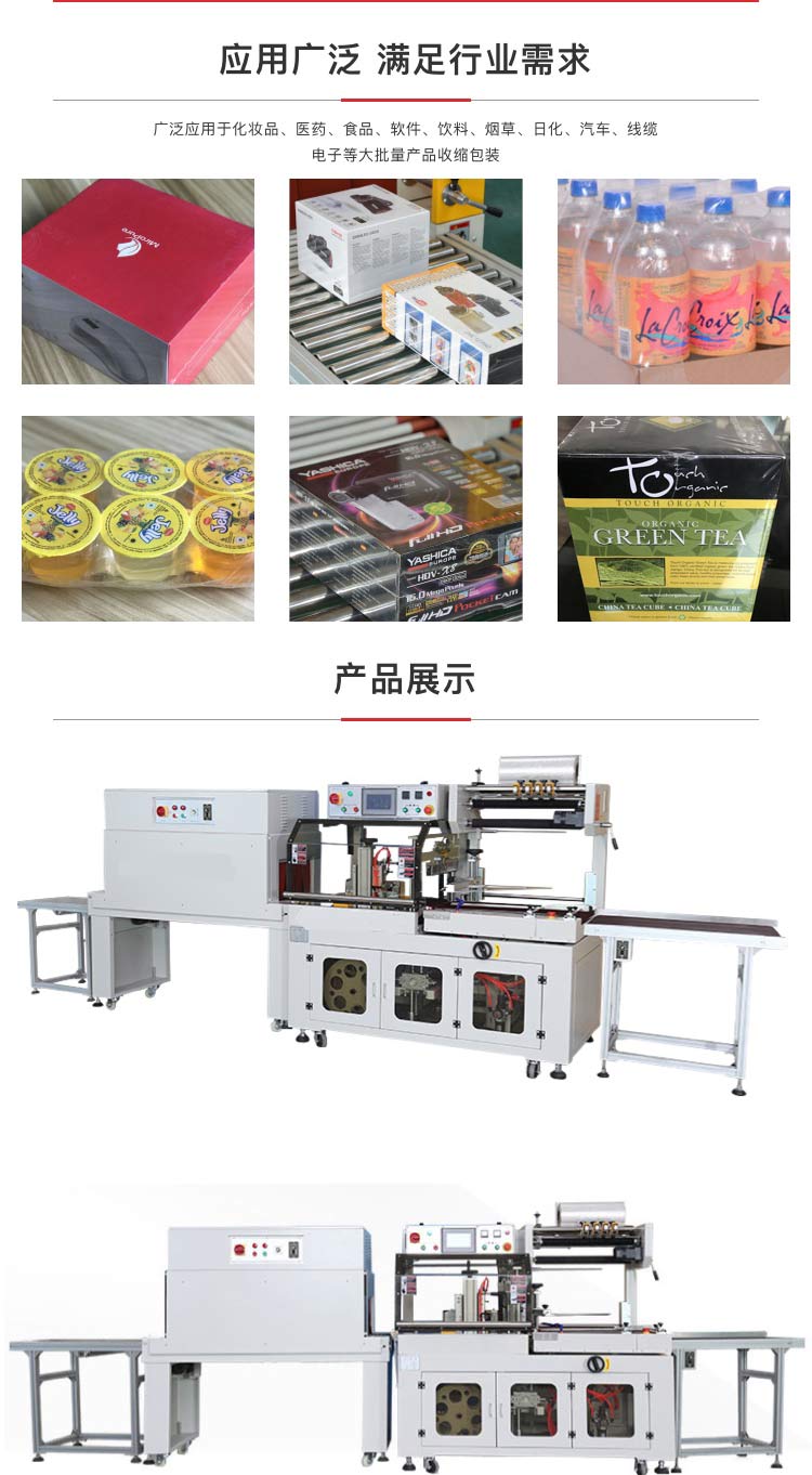介紹:全自動邊封收縮包裝機是一款中速型全自動封切熱收縮包裝機,采用光電自動偵測,工作效率高,適合各種包裝類型不同大小及形狀的產品。該款收縮包裝機廣泛適應于鋁型材、水管、印刷、相框、電子、日化、化妝品等大批量生產的行業。