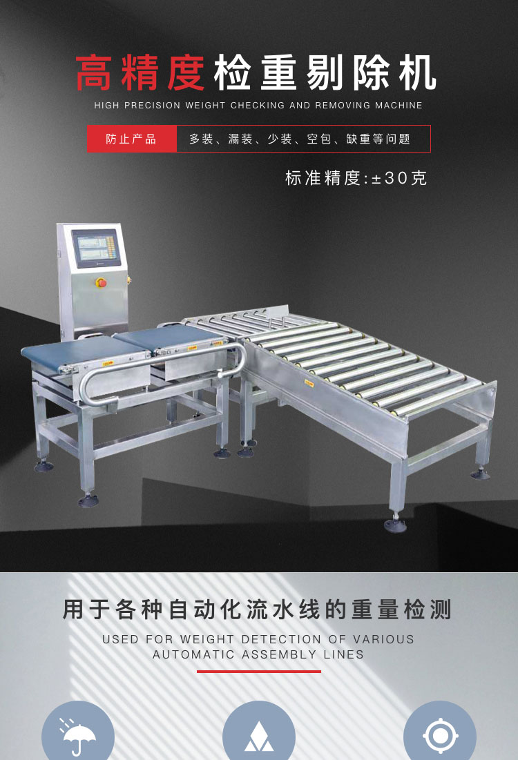 介紹:應用領域: 用于各種自動化流水線以及物流輸送系統上重量檢測、上下限判別或重量分級選別; 廣泛應用于制藥、食品、玩具、五金、日化等行業的在線重量檢測; 可直接替代人工稱重,提高生產效率以及稱重的一致性、可靠性。